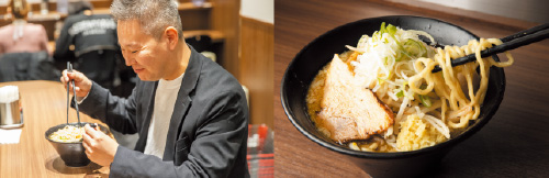 ※税込価格 - 初めて「ど・みそ」のラーメンを食べたときは衝撃的でした。もともと味噌ラーメンが好きで、今までいろいろ食べ歩いてきましたが、あの濃厚で深みのある味噌スープに絶妙な硬さのちぢれ麺は、僕史上最強。もうこの組み合わせしかありえないんじゃないかってくらいよく合います。僕が「ラーメン」と言うときは、ほぼイコールで「ど・みその味噌ラーメン」のことですね(笑)。
